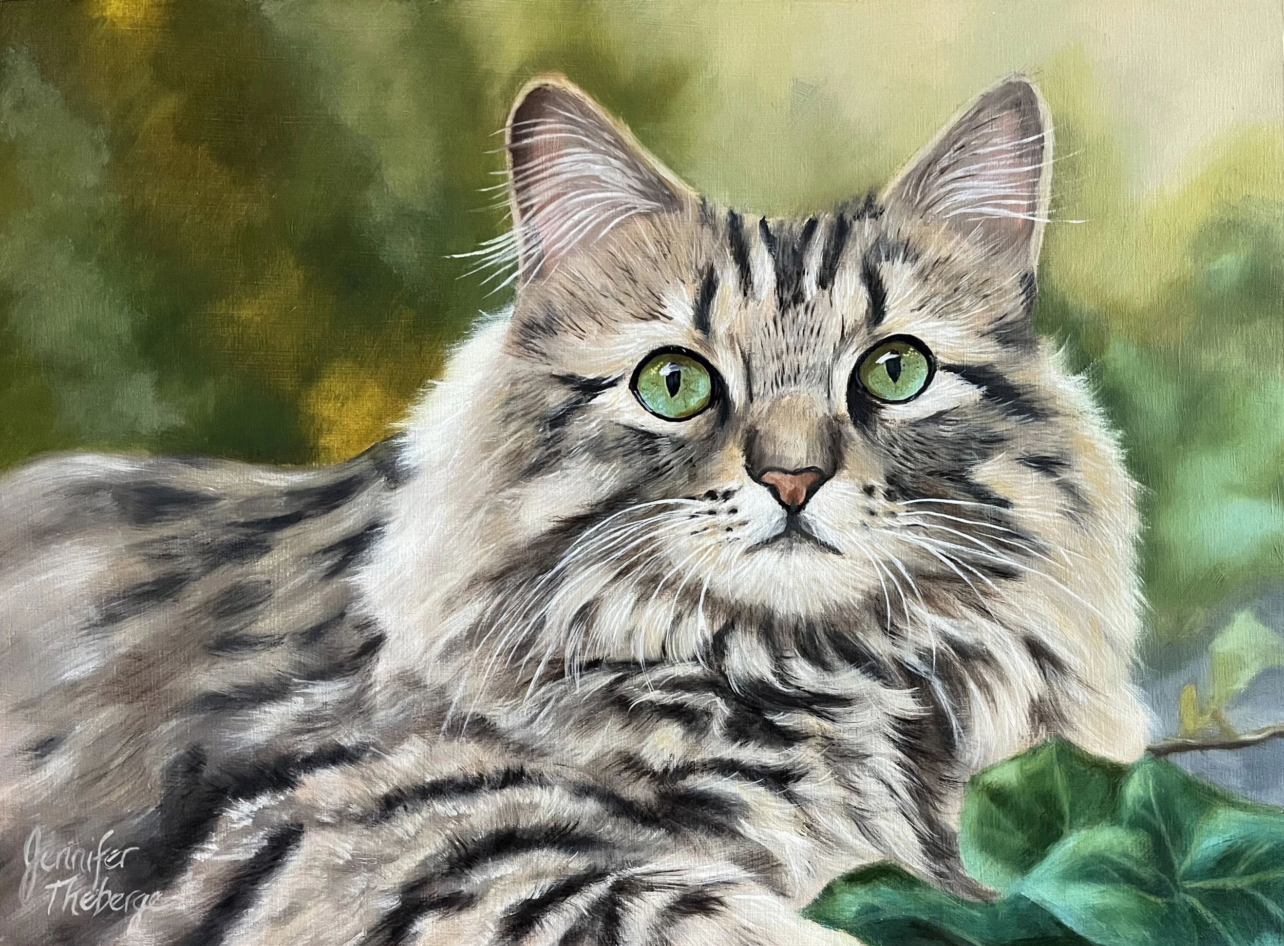 Welcome to Jennifer Theberge Studio, where your beloved pet’s unique personality is captured in a stunning hand-painted oil paint portrait. Let me celebrate your pet’s individuality through my artistry as a professional painter with over 20 years of experience.